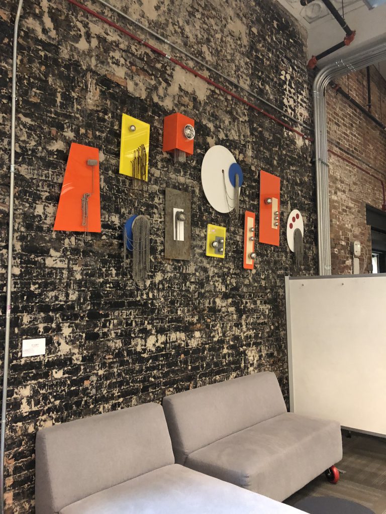 Kamhi designed several site-specific art pieces that would blend well with the overall industrial atmosphere of the Polsky Exchange. She wished that her arts at the Exchange can convey a sense of connectivity, and she thought that the presence of arts in an office space has a very positive influence on people, especially on entrepreneurs who are keen on seeking innovation.