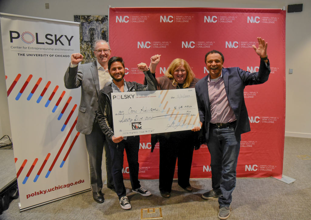 Last year, 85 alumni teams from across the world applied to the inaugural Alumni New Venture Challenge. Of these, 35 teams were selected to advance to Phase II where they received local mentoring and support. Semi-finals were then held in each region and eight companies were selected to advance to the day-long Alumni New Venture Challenge global finals, which took place in Chicago on May 2, 2019. At the finals, the eight teams presented in front of an esteemed panel of top investors and competed for $125,000 in investment. In the end, Care Advisors, a company from the Midwest, won first place and $65,000 in prize money.